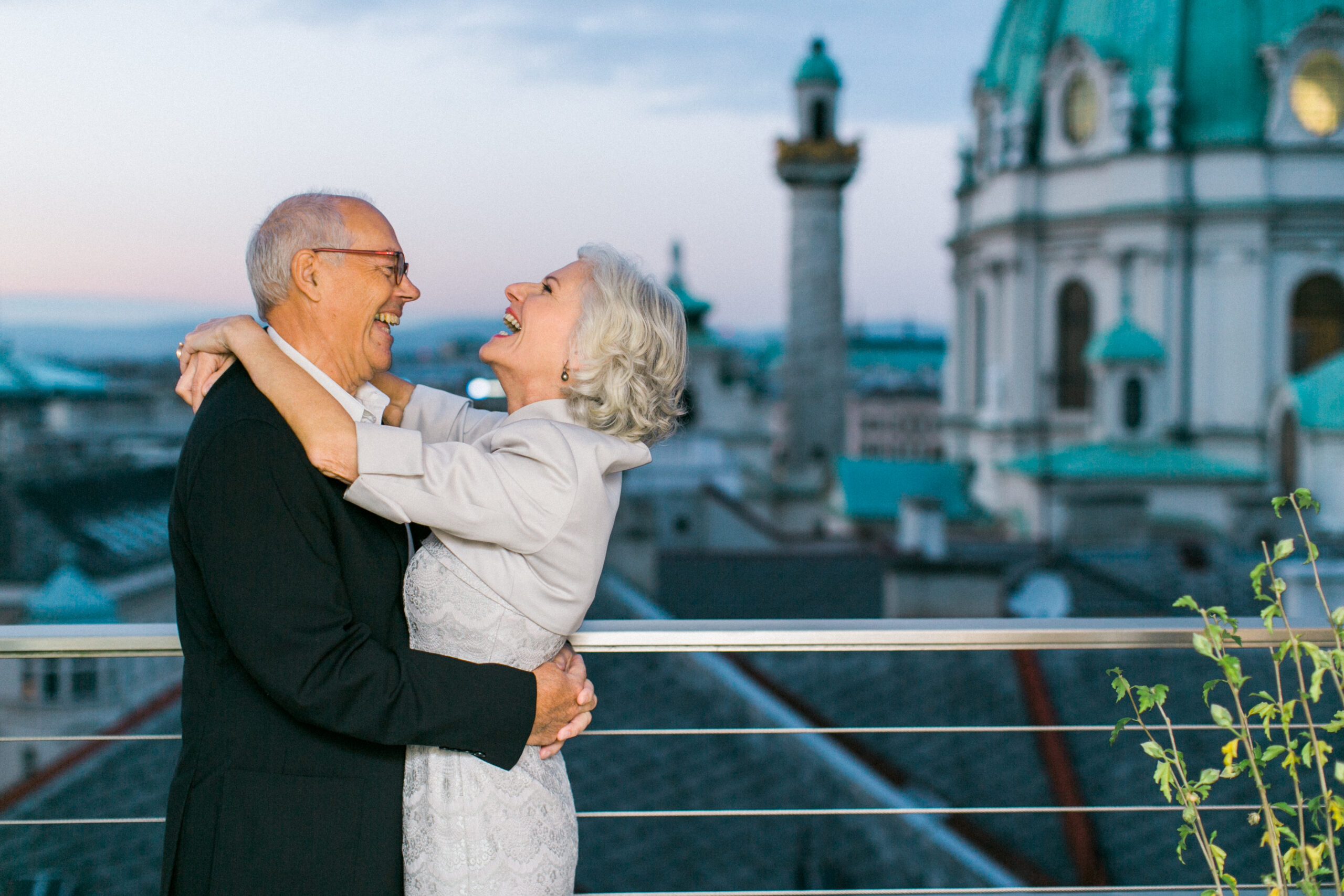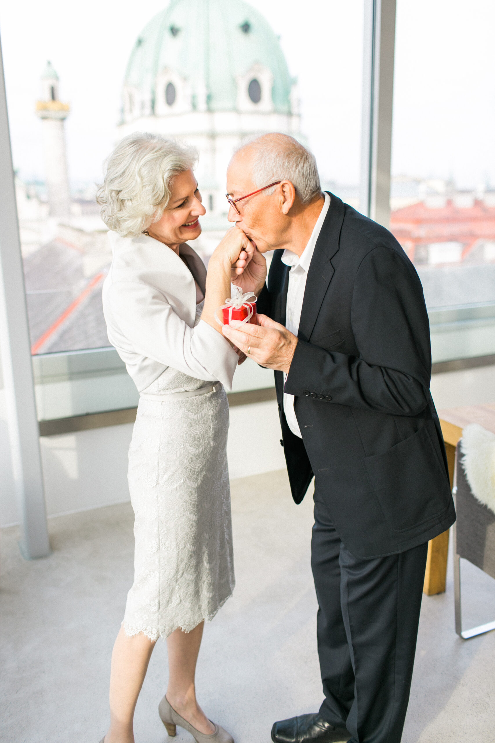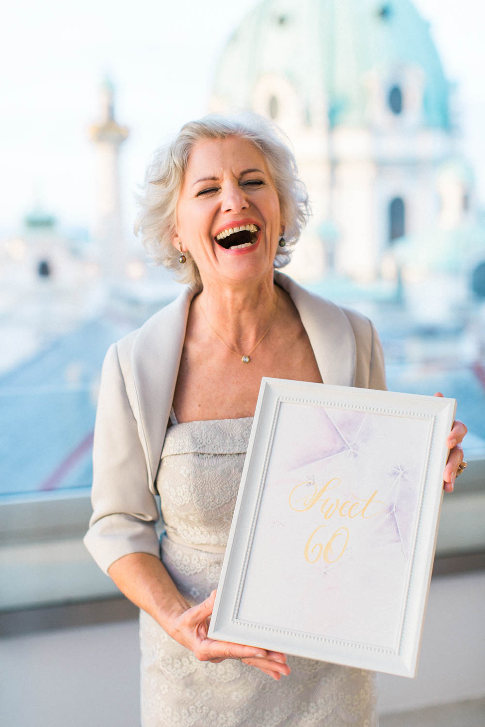 Margarete will zu ihrem 60. Geburtstag keine große Party feiern. Aber sie ist gerne im Kreise ihrer Familie. Deshalb organisieren ihre Tochter Eveline und ihre Enkelin Sophia eine kleine Überraschungsparty für sie. Margaretes Mann wusste von dem Plan und willigte ein, seine Frau im Laufe des Vormittags aus ihrer Wohnung zu locken. Margaretes Familie hatte über alles nachgedacht. Margarete wird zu einem Besuch bei der Visagistin eingeladen. In der Zwischenzeit bereiten ihre Tochter und die Enkelin den schönen Tisch mit allerlei Köstlichkeiten vor und packen die Geschenke ein. In einer bezaubernden Atmosphäre isst und feiert die Familie, nippen Sekt und überrascht Margarete mit Geschenken – alles mit atemberaubender Aussicht auf die Wiener Karlskirche.