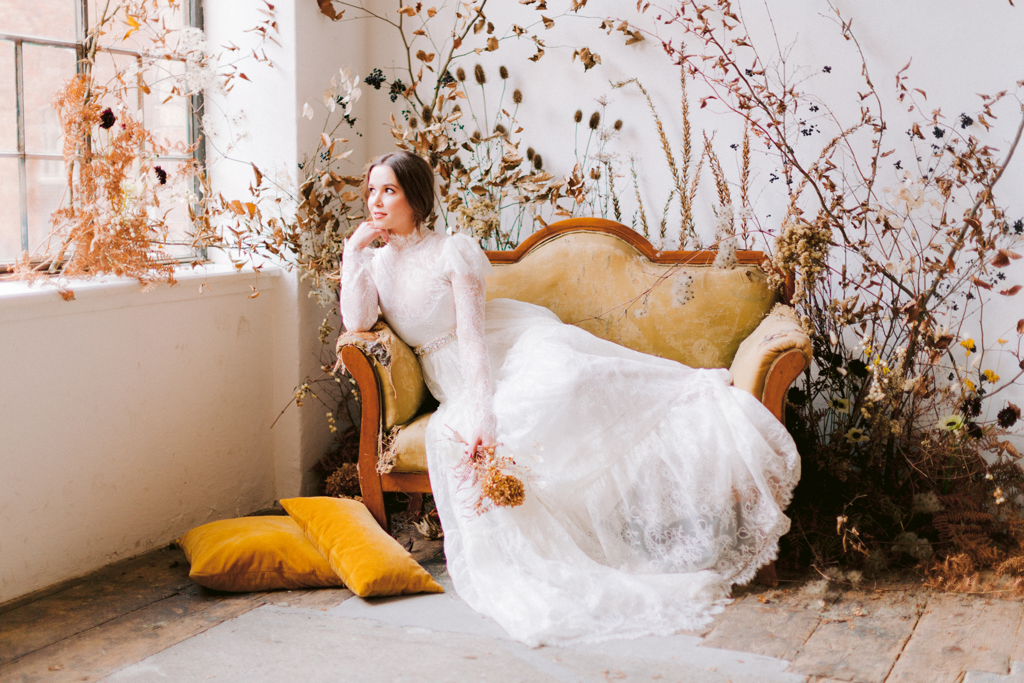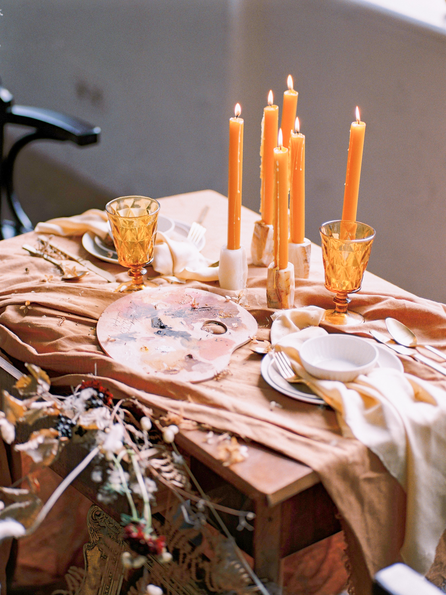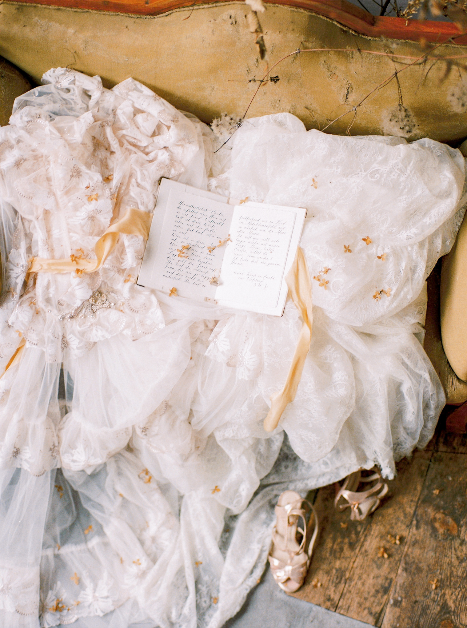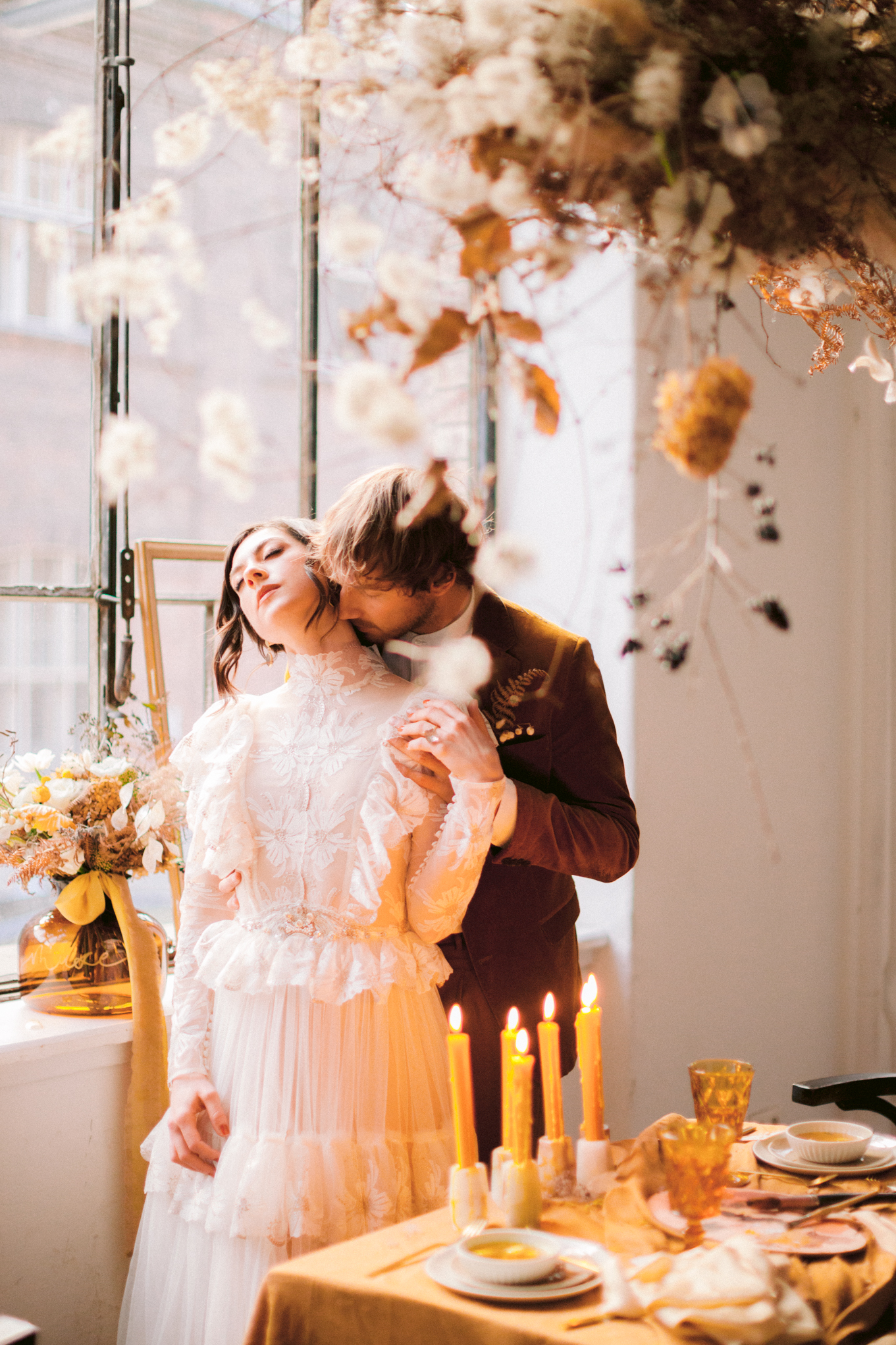 Es scheint, als hätten die Musen auf sein Erwachen gewartet. Der Tisch ist festlich gedeckt, die Einladungen versandfertig, der Hochzeitsbogen in voller Trockenblütenpracht. Bereit für das Fest der Liebe, zum Gedenken an Klimt.