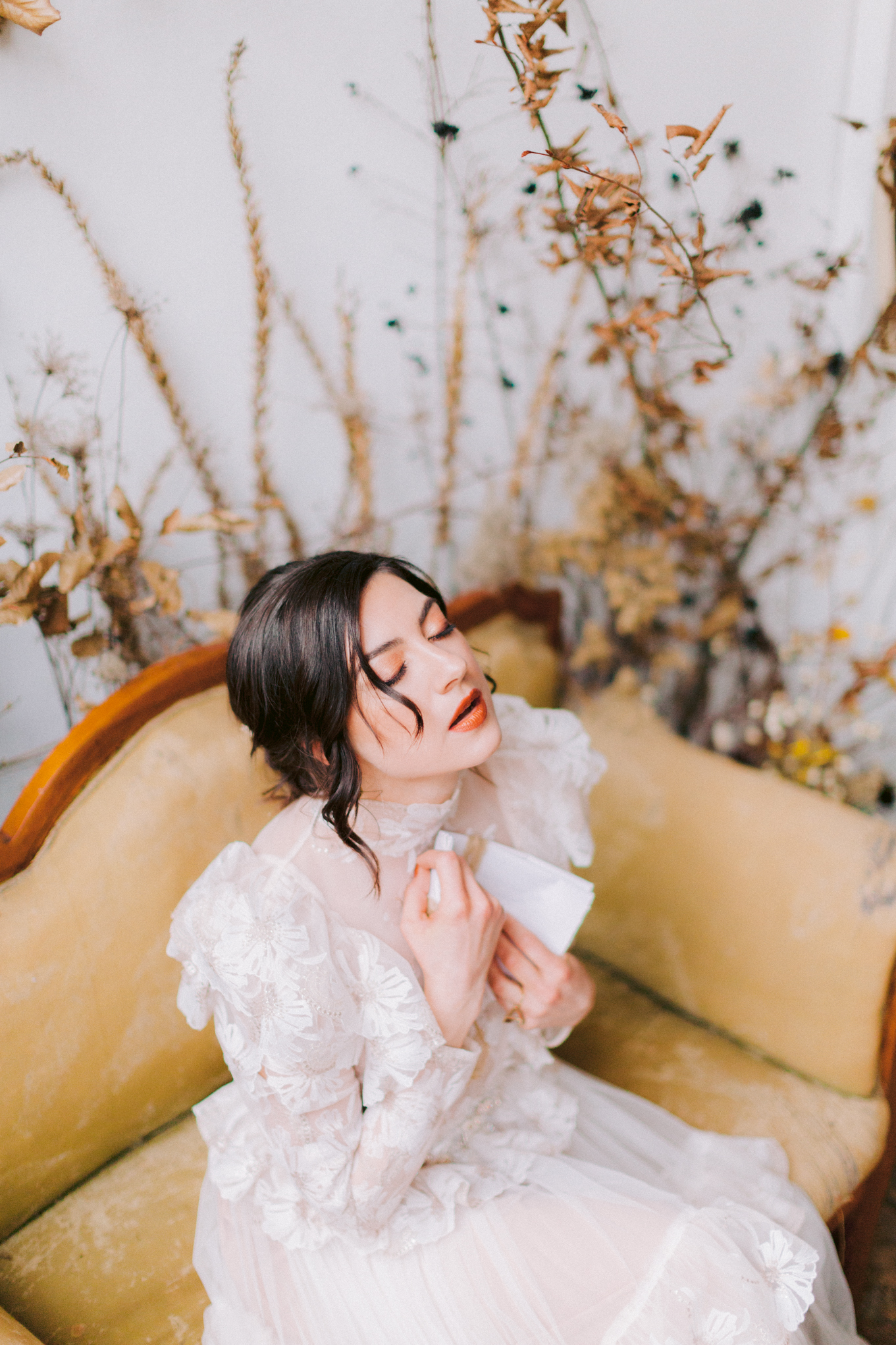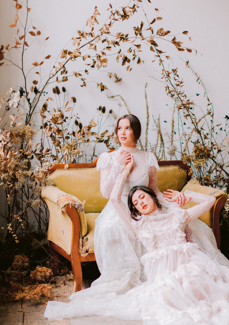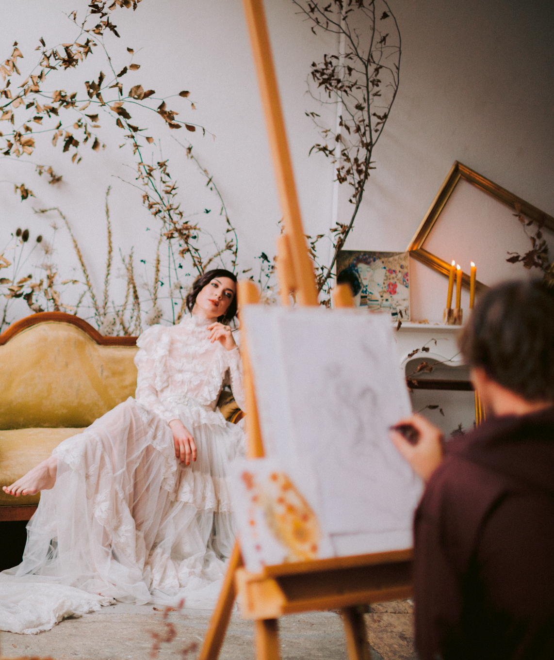 Zeitreise. Gustav Klimt findet 2 seiner Musen in Brautkleidern in seinem Atelier. Eine von ihnen soll endlich seine Braut werden. Die beiden Schönheiten verweilen zwischen all den getrockneten Blumen – ihre verblassende Schönheit erhält eine neue Bedeutung.