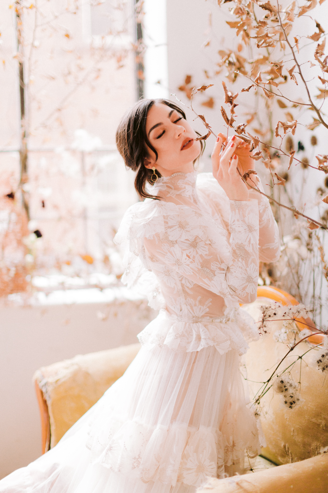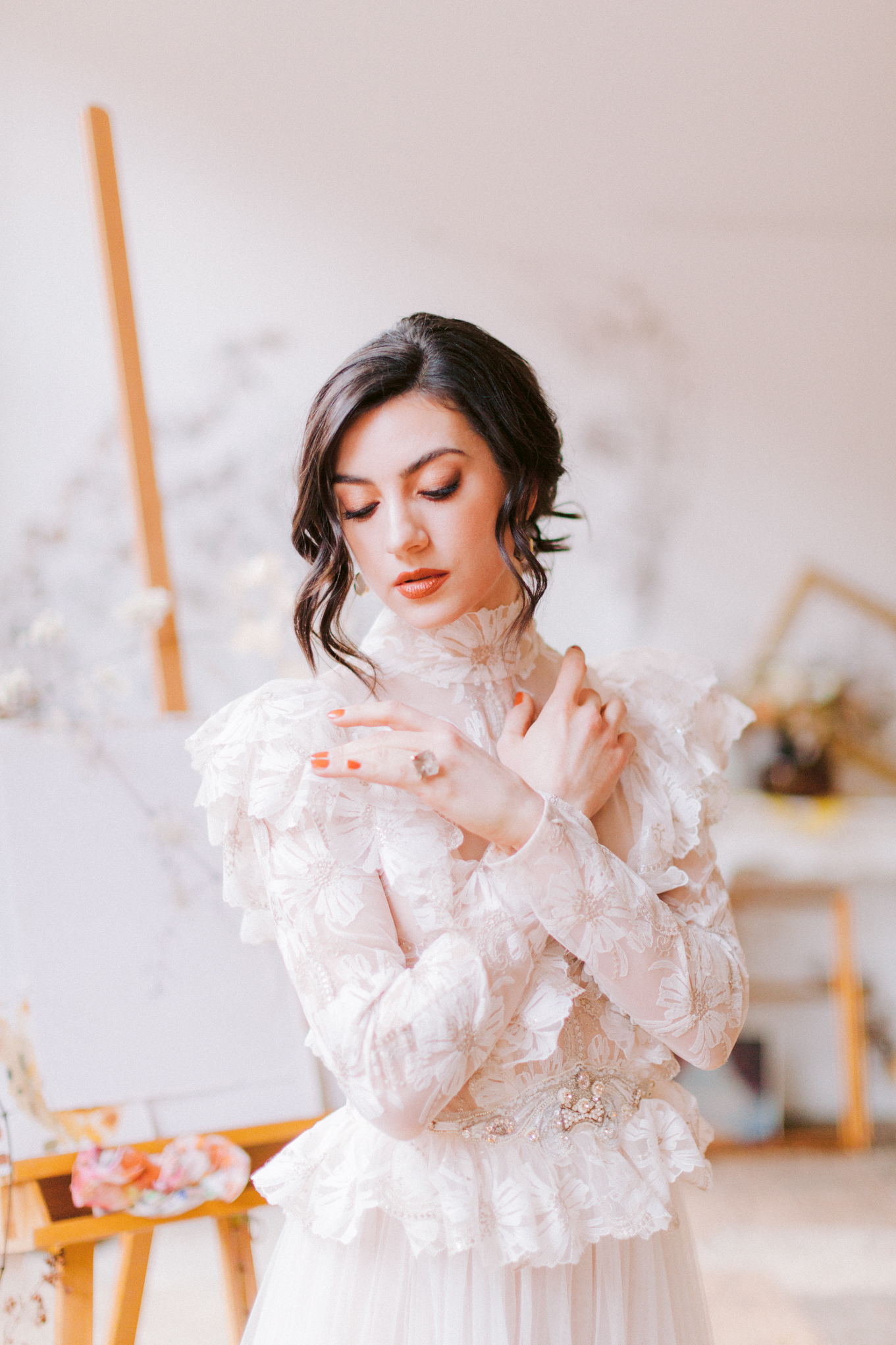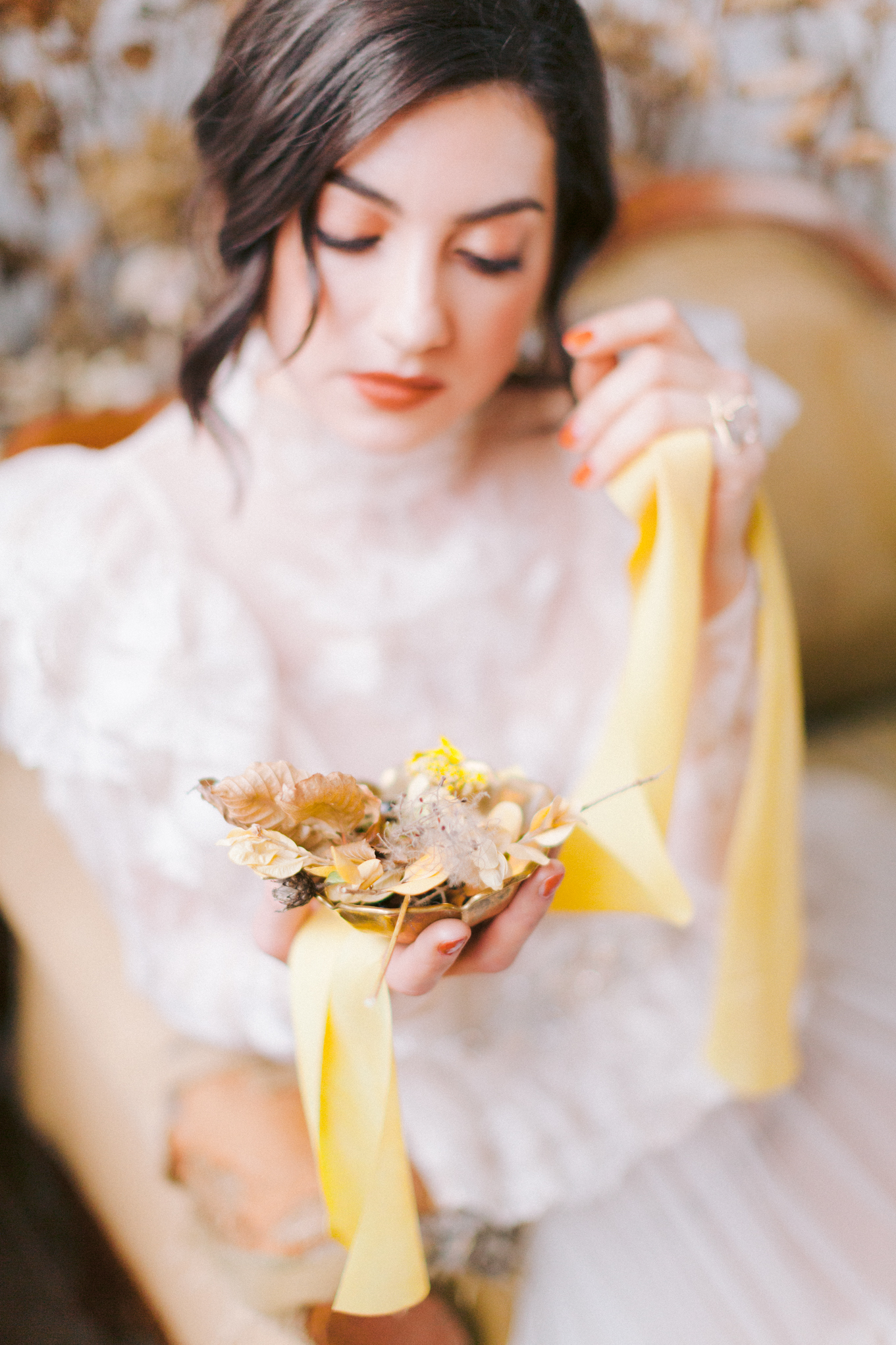 Zeitreise. Gustav Klimt findet 2 seiner Musen in Brautkleidern in seinem Atelier. Eine von ihnen soll endlich seine Braut werden. Die beiden Schönheiten verweilen zwischen all den getrockneten Blumen – ihre verblassende Schönheit erhält eine neue Bedeutung.